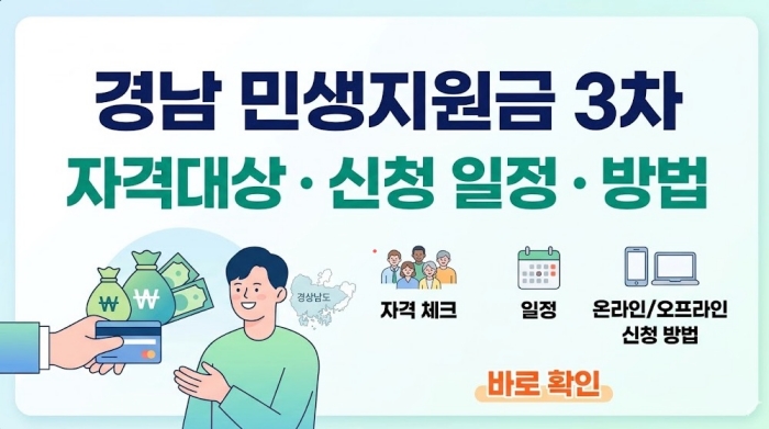 혹시나 하는 마음에 ‘경남 민생지원금 3차’를 검색하셨나요? 고물가·고금리로 힘든 요즘, 단비 같은 소식을 20년 경력의 정책 전문가가 누구보다 빠르고 정확하게 알려드릴게요.