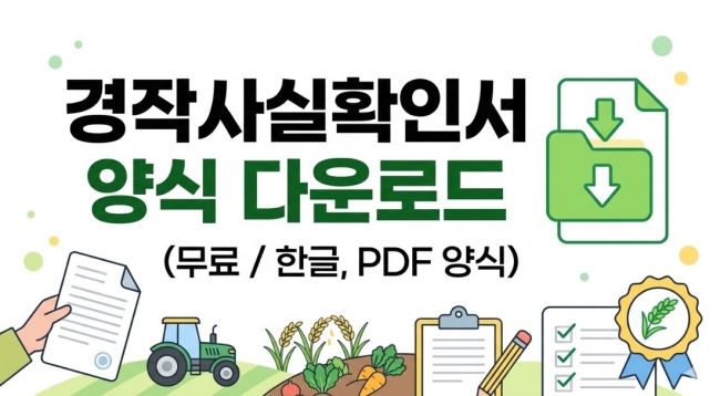 | 양식 다운로드 | ▶ 2026년 최신 경작사실확인서 양식 다운로드 (.hwp) ※ 위 링크는 참고용이며, 방문할 주민센터에 비치된 양식을 사용하는 것이 가장 정확합니다. |