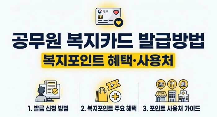 공무원 복지포인트 전용 복지카드 발급방법은 공무원연금공단의 맞춤형 복지포탈에 접속해 제휴 금융사의 카드를 직접 신청하는 과정입니다.