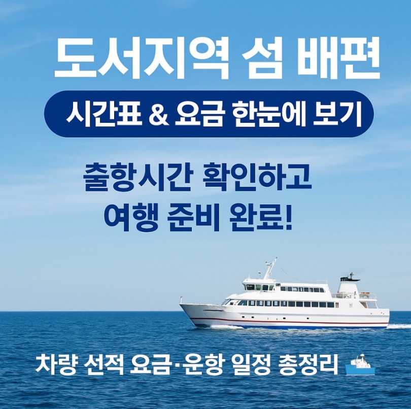 도서지역 섬 배편 여객선 시간표와 요금 정보를 정리해드리겠습니다.