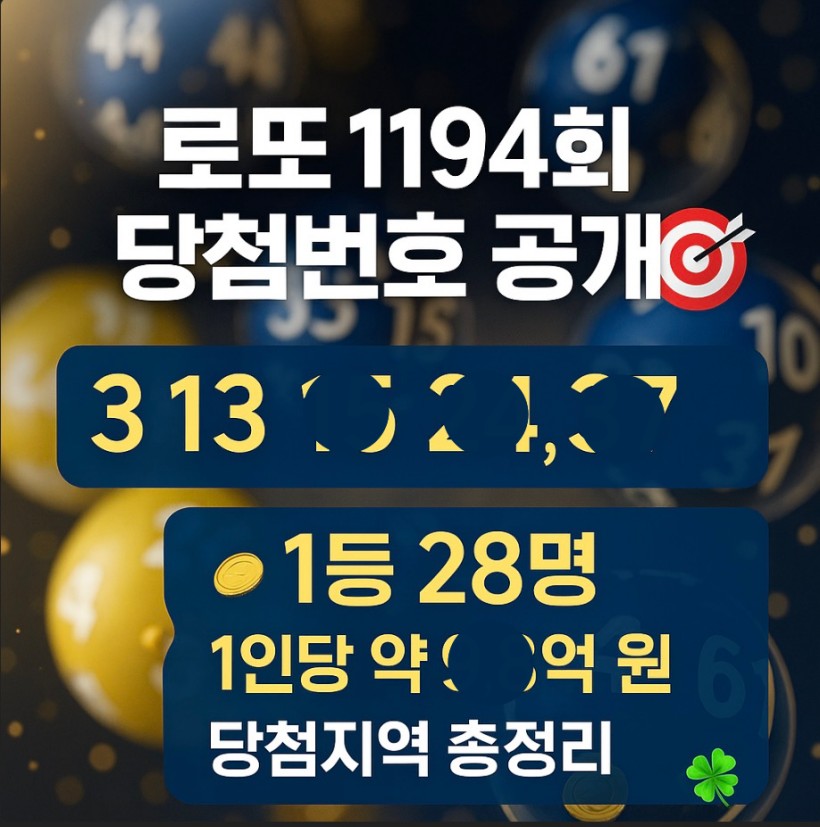 이번 주도 많은 분들이 기다리셨던 로또 제1194회 당첨 결과가 발표되었습니다.