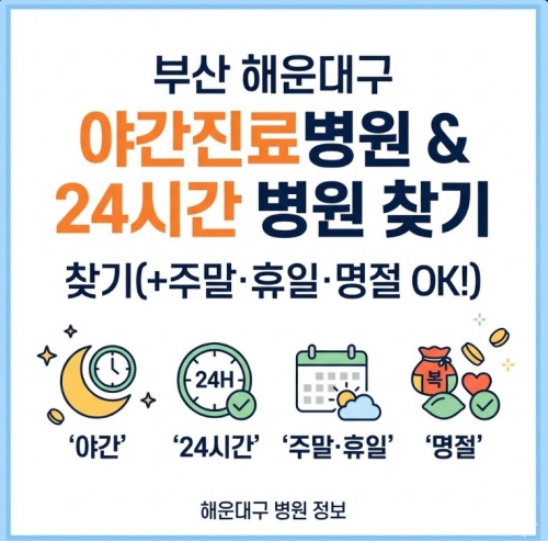추석이나 설날 명절 연휴에 해운대로 여행을 왔거나 친척 집에 방문했는데, 동네 병원들이 모두 문을 닫아 난감할 때가 있습니다.