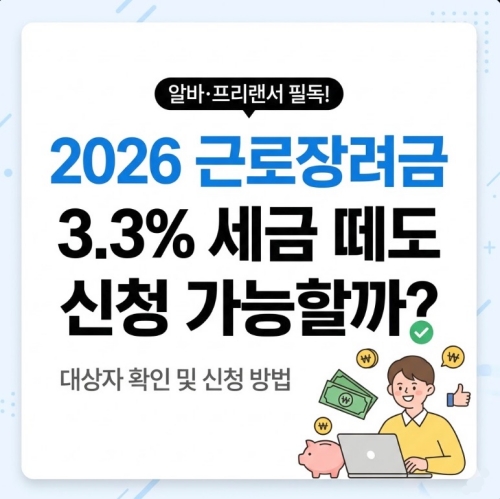 알바나 프리랜서로 일하면서 3.3% 세금을 떼고 급여를 받으시는데 2026 근로장려금 3.3% 신청 대상이 맞는지 헷갈리시나요?