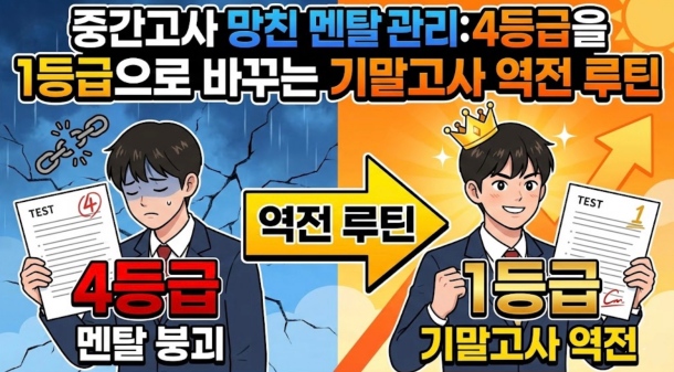 지금 가장 바보 같은 행동은 지난 시험지를 붙들고 우울해하다가, 다가올 기말고사까지 망치는 것입니다. 멘탈을 잡고 역전할 수 있는 현실적인 방법을 지금 바로 알려드립니다.