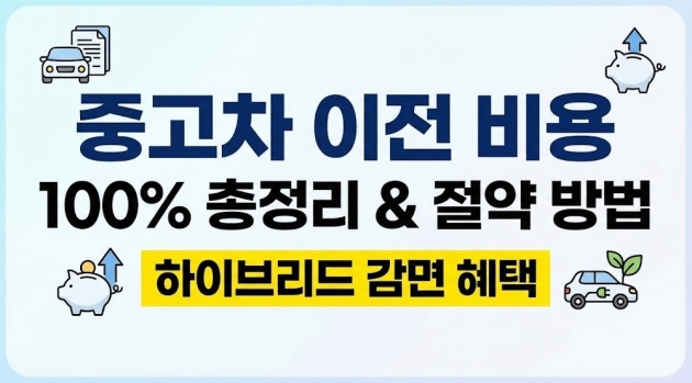 그래서 오늘은 취등록세, 공채, 각종 수수료 등 복잡하게 얽혀있는 중고차 이전 비용 항목을 100% 총정리해 드립니다. 특히 정부의 친환경 정책에 따른 하이브리드 중고차 감면 혜택부터 불필요한 수수료를 줄여 이전 비용을 획기적으로 절약하는 꿀팁까지, 내 손안의 스마트폰 하나로 쉽게 확인하고 대처하는 방법을 완벽하게 안내해 드리겠습니다.