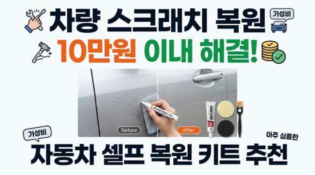 아침 출근길, 주차장에서 내 차 문짝이나 범퍼에 선명하게 그어진 기스(흠집)를 발견하고 가슴이 철렁 내려앉으신 적 있으신가요? 저 역시 마트 주차장에서 당한 문콕 테러에 눈물을 머금고 공업사에 갔다가, 판금 도색 명목으로 무려 40만 원의 견적을 받고 깜짝 놀라 돌아온 경험이 있습니다. 오늘은 굳이 비싼 돈을 들이지 않아도 차량 스크래치 복원을 10만 원 이내로 완벽하게 방어하는 현실적인 비법과, 초보자도 5분 만에 성공할 수 있는 가성비 셀프 키트를 속 시원하게 알려드리겠습니다.