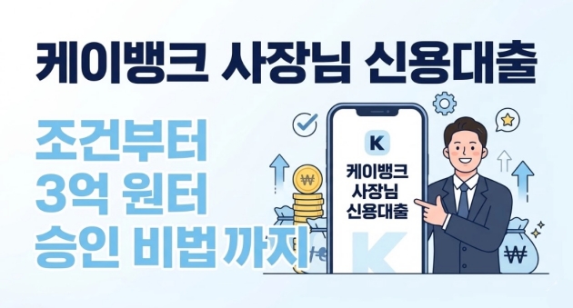 ※ 면책 조항: 본 콘텐츠는 작성일(2026.03.10) 기준 케이뱅크 공식 앱 및 공시 자료를 바탕으로 소상공인의 정보 제공을 위해 작성되었습니다. 상품의 금리, 최대 3억 원 한도 산출 결과, 연장 심사 기준 등은 한국은행 기준금리 변동 및 케이뱅크 자체 심사 규정(신용점수, DSR, 실매출 등)에 따라 예고 없이 변경되거나 차등 적용될 수 있습니다. 대출 실행 전 반드시 케이뱅크 앱 내 상품 설명서와 약관을 꼼꼼히 확인하시기 바랍니다. 과도한 빚, 고통의 시작입니다.