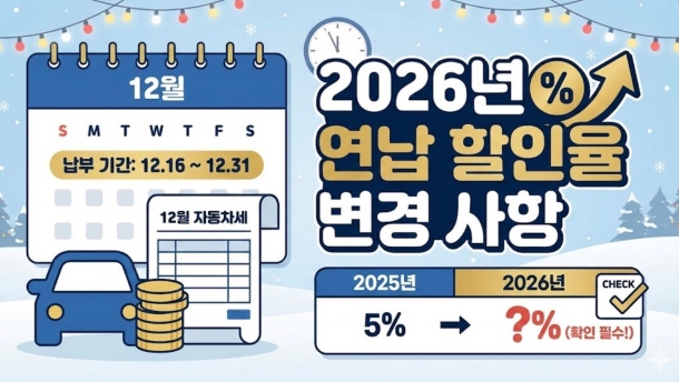 세금은 피할 수 없지만, 줄일 수는 있습니다. 이번 12월 자동차세는 기한 내에 납부하여 가산세를 막는 것이 1차 방어이고, 다가오는 1월에 2026년분 연납을 신청하여 할인을 챙기는 것이 2차 공격입니다.