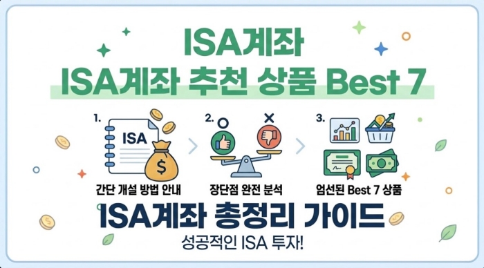 최신 기준 세금 혜택의 끝판왕인 ISA계좌 추천 상품 Best 7의 개설 방법과 장단점을 완벽히 비교했으니 나에게 맞는 곳을 찾아 세금 혜택을 누려보세요.